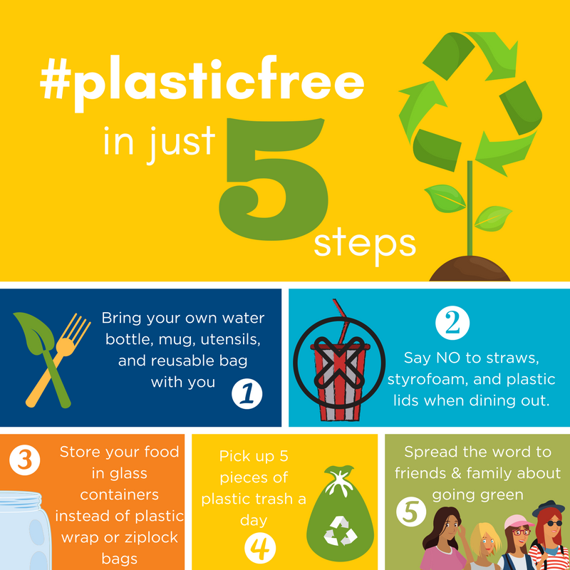 Plastic bags, straws, lids, utensils, bottles, cups, and other single-use items are the most common plastic pollutants, and are relatively easy to eliminate from your daily life. Saying “no thanks” to disposable plastic items is an easy way to be the sea change we all need.